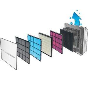 Die Filter befinden sich in einem speziellen Gehäuse und bilden eine Einheit. Die Einheit benötigt nicht viel Platz und ist einfach auszutauschen. Die Filtereinheit wirkt wie eine undurchdringbare Barriere und beseitigt alle Luftschadstoffe: